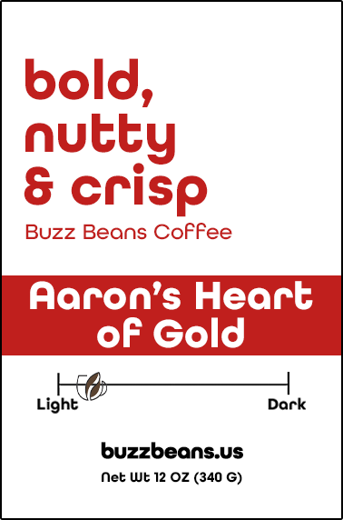 Aaron’s Heart of Gold is a light caramel blend his mother enjoys!! With every bag of his blend, a portion of the proceeds will be to support Aaron Wheeler’s heart transplant.
